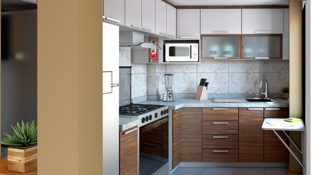 Si tienes niños o piensas tenerlos, la cocina será el lugar perfecto para ayudar a tus hijos con sus tareas sin dejar de estar pendiente de las tuyas en ésta área, ya que cuenta con una práctica mesa desplegable que la podrás deslizar cuando necesites compartir con tus hijos las tareas diarias o simplemente para que te tomes una taza de café.