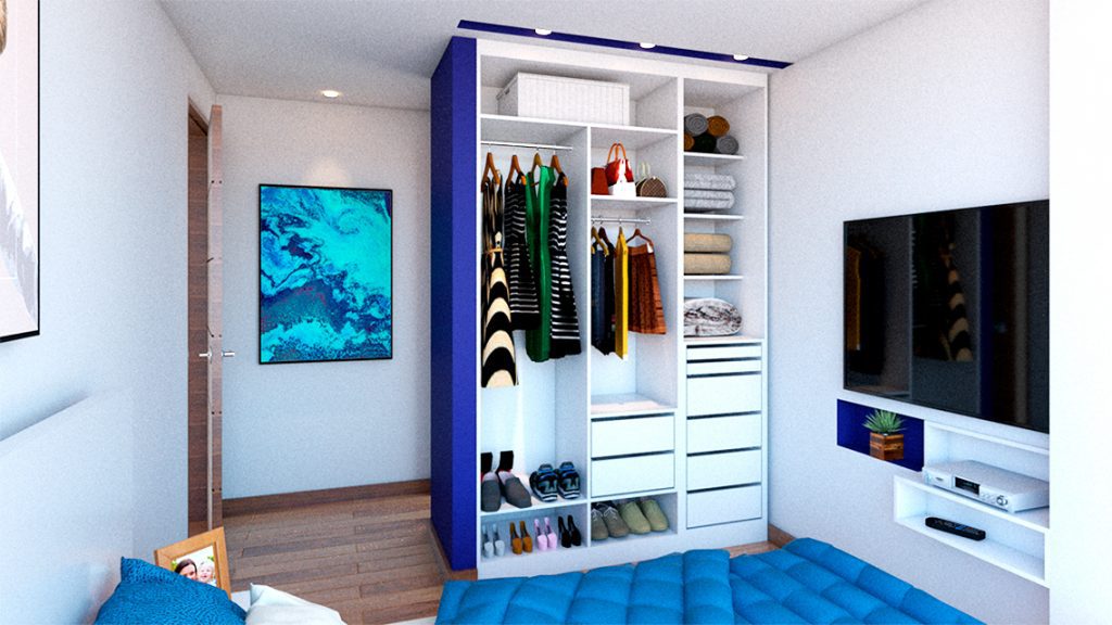 El dormitorio principal cuenta con un elegante armario, que más que armario, lo llamamos “Tu Boutique personal” ya que, debido a su distribución, tiene mucho sitio de almacenaje, donde toda tu ropa la podrás lucir como si estuviera en una tienda, con iluminación en la parte superior, sitio especial para almacenar tus bolsos y un joyero dentro del mismo armario, para ordenar tus joyas como si las estuvieras exhibiendo.